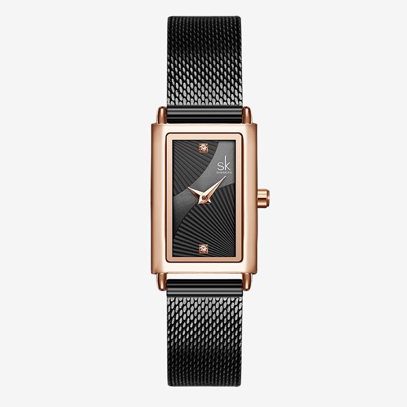 Стильные и элегантные женские наручные кварцевые часы станут универсальным дополнением к повседневному и деловому образу. Лаконичная прямоугольная форма корпуса и аналоговый циферблат с отметками придают модели современный и аккуратный внешний вид.