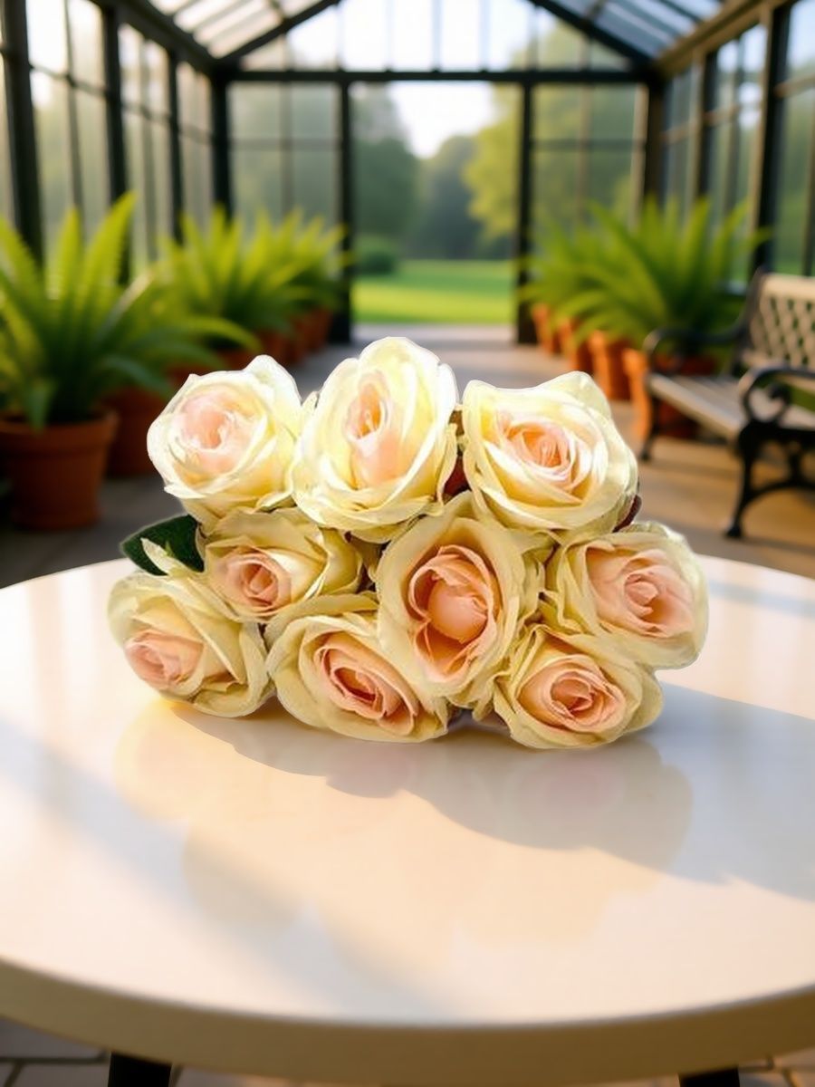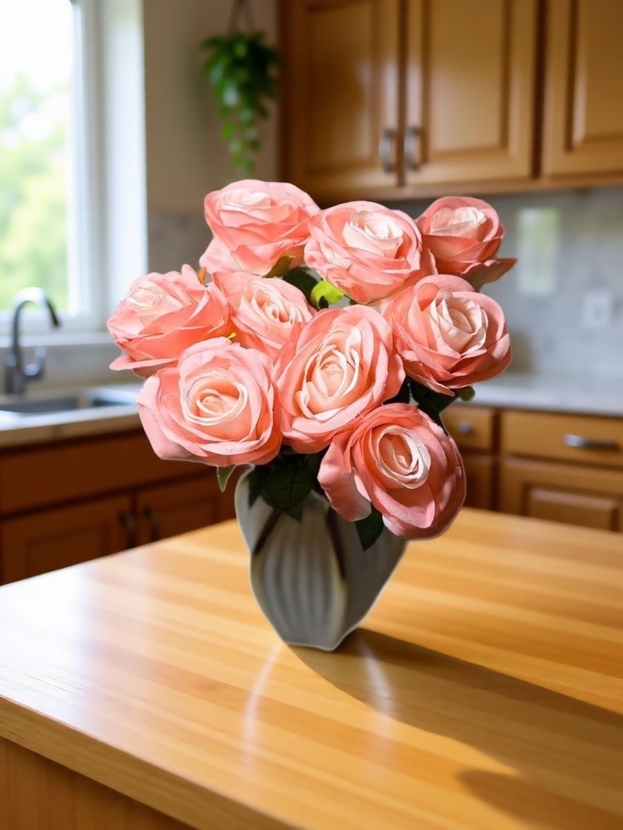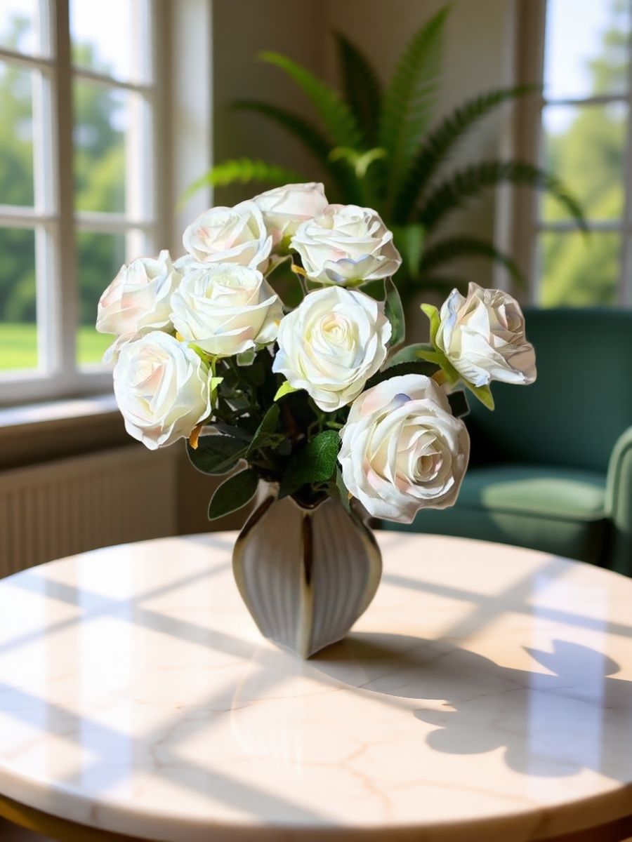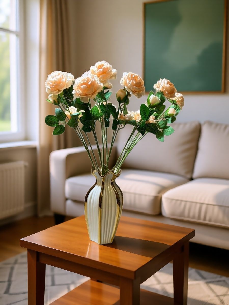 Декоративные искусственные цветы легко очищаются от пыли и сохраняют аккуратный внешний вид без полива и особых условий хранения.