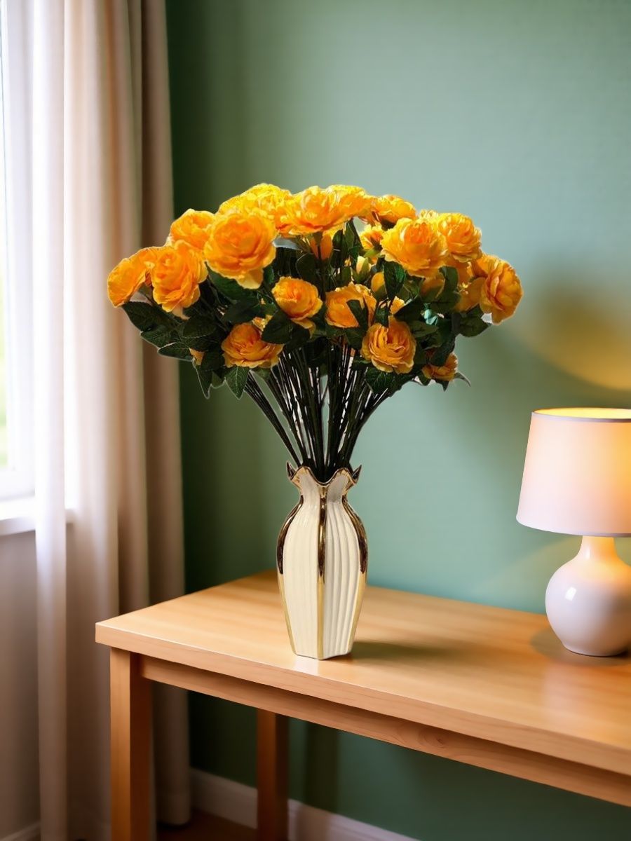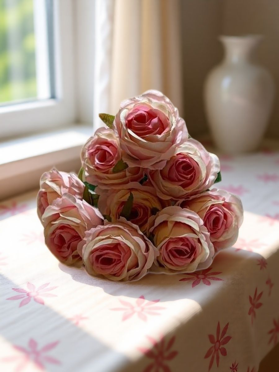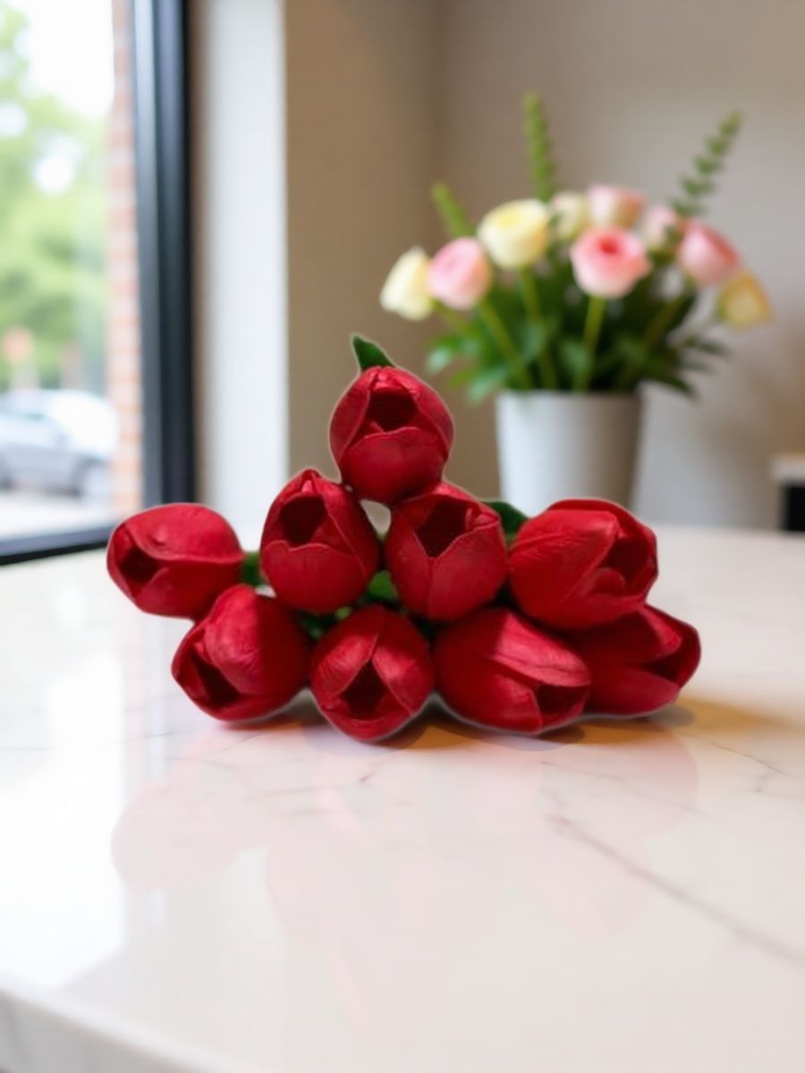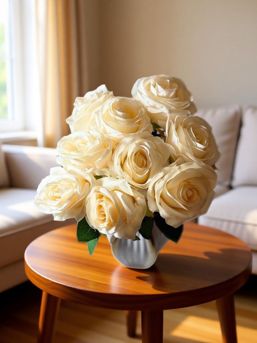 Декоративные искусственные цветы легко очищаются от пыли и сохраняют аккуратный внешний вид без полива и особых условий хранения.