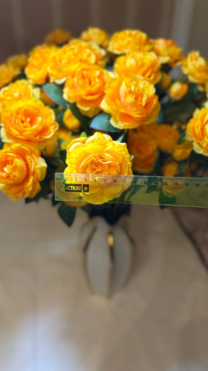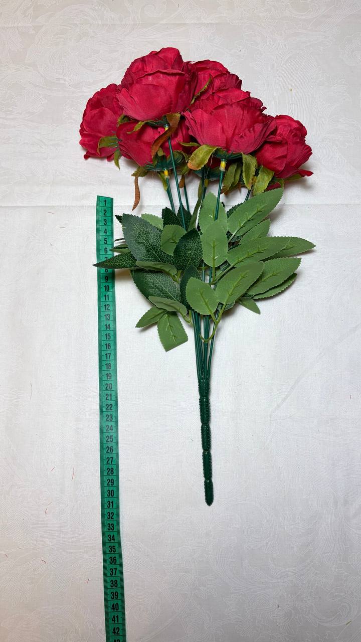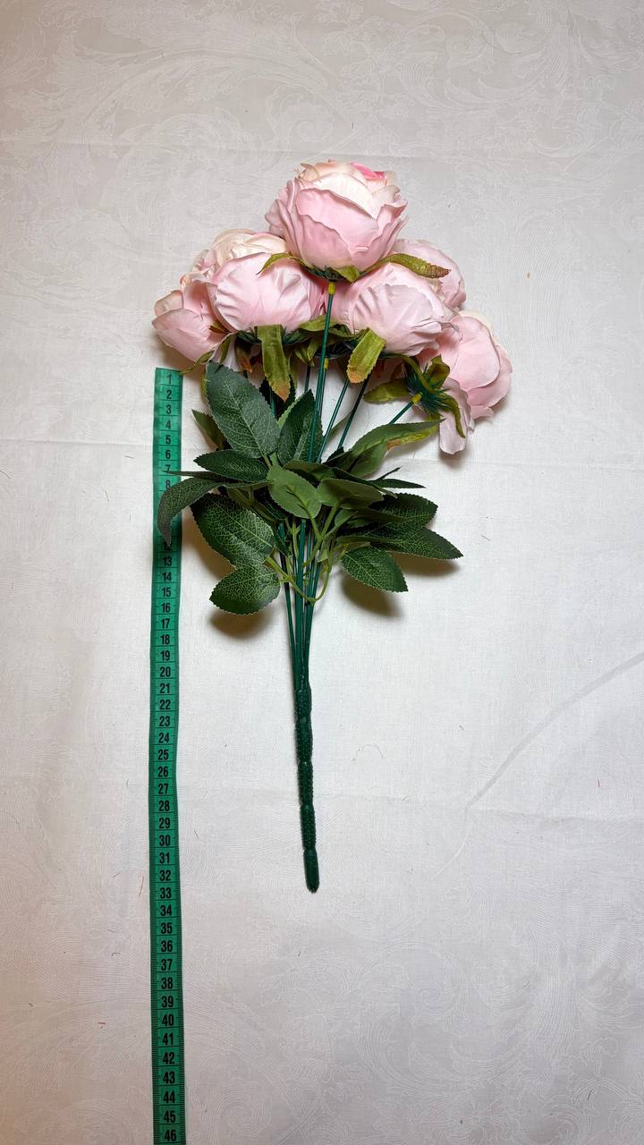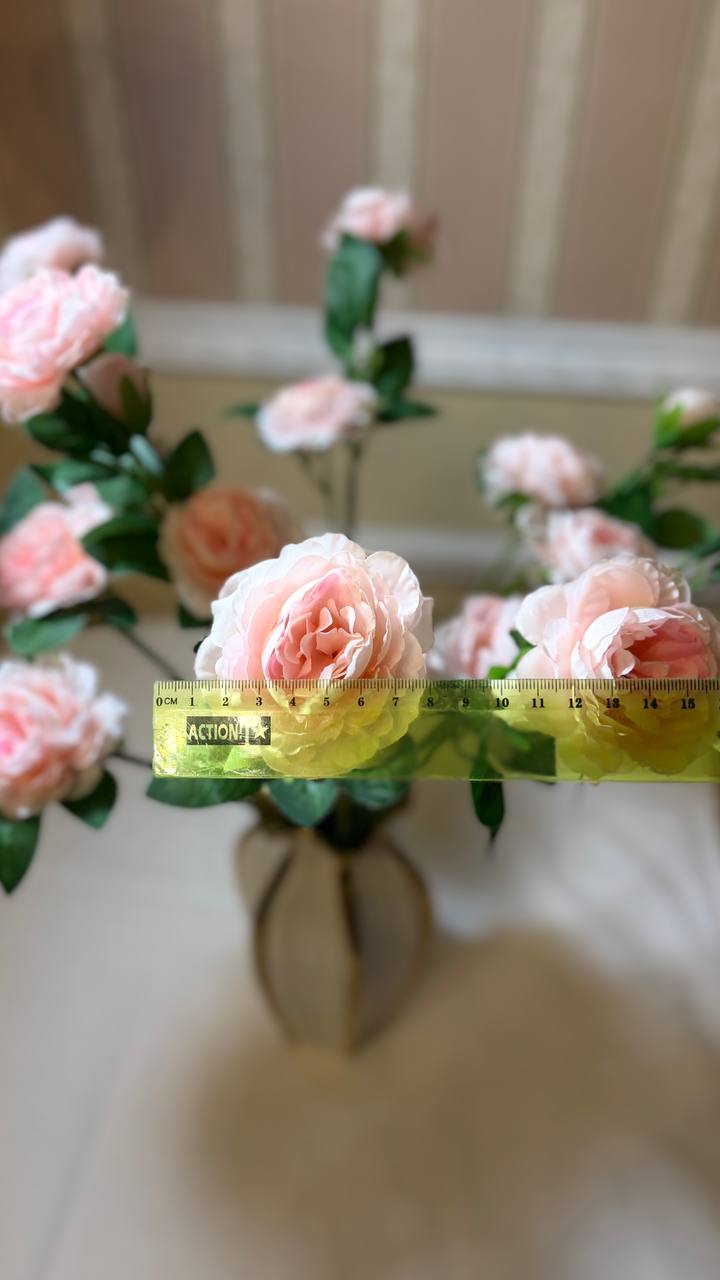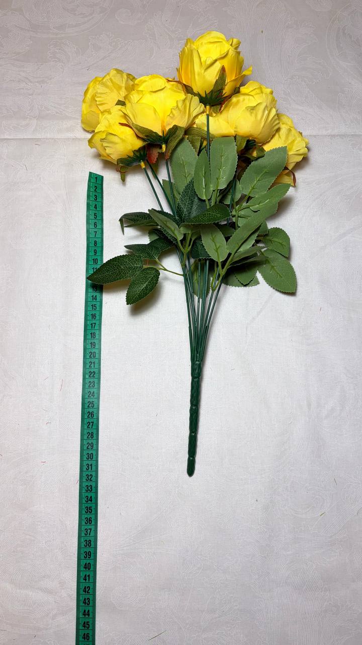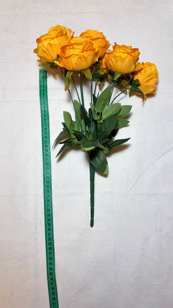Букет состоит из 9 веточек. Цветы искусственные выполнены из прочного экопластика, а лепестки и листья — из плотной водоотталкивающей ткани. Высота букета — 44 см.
