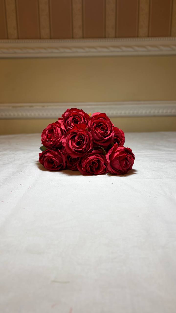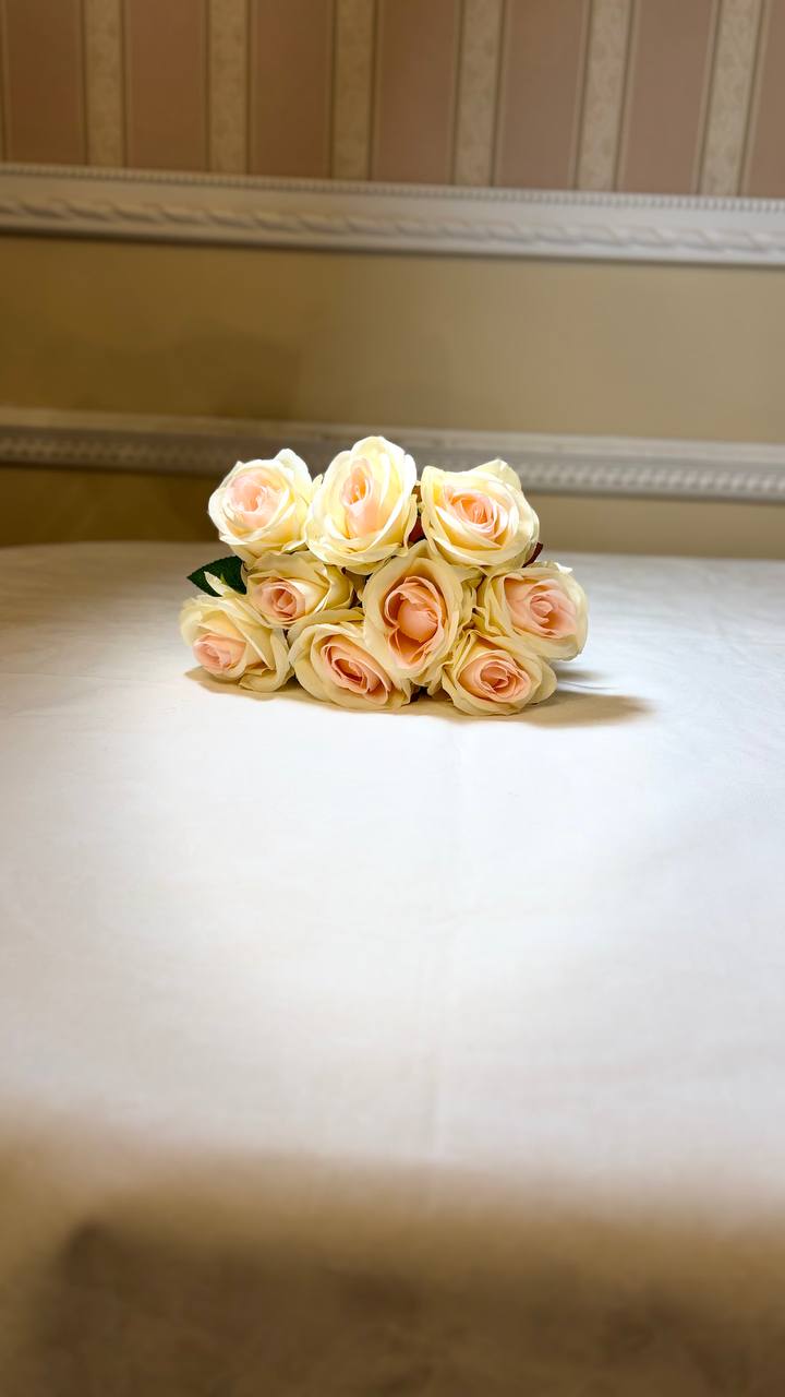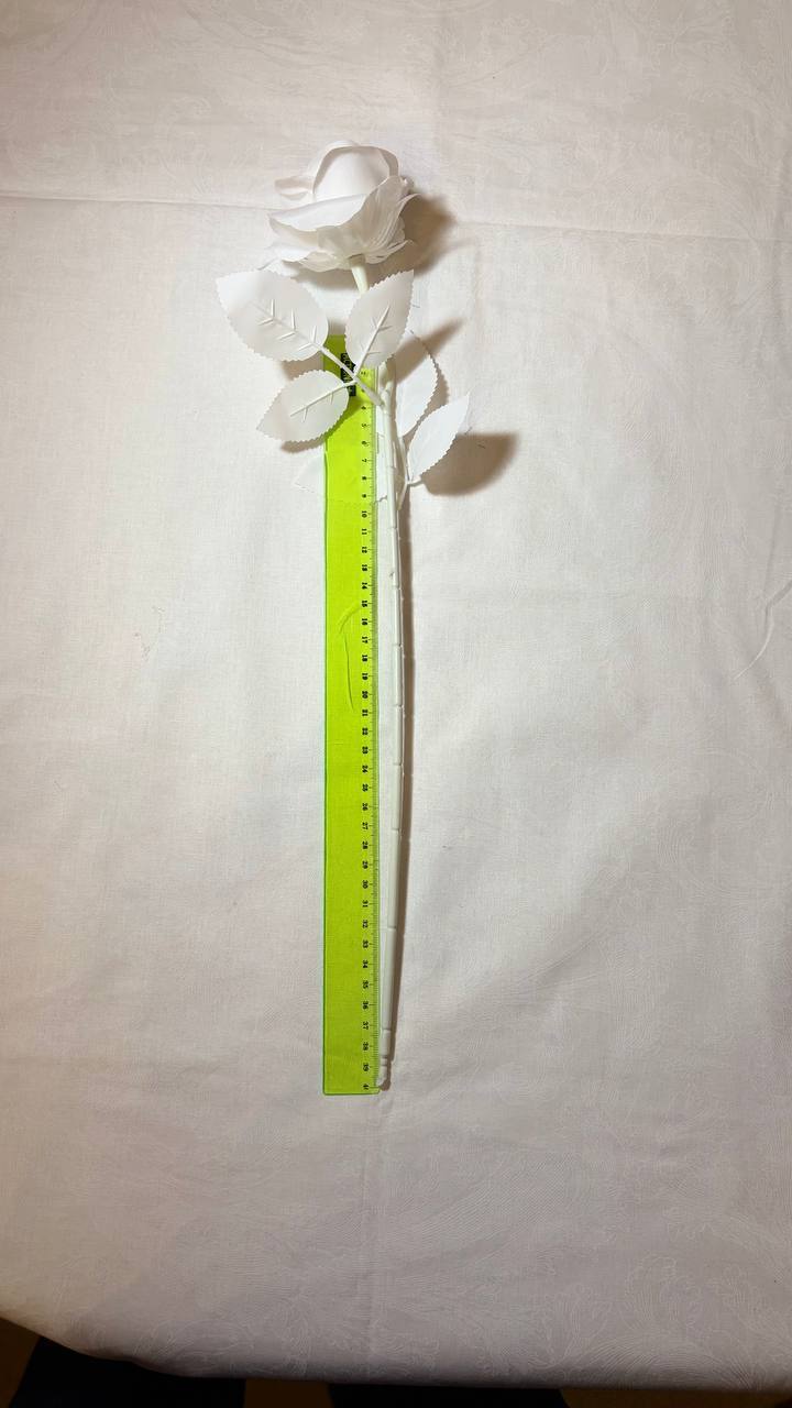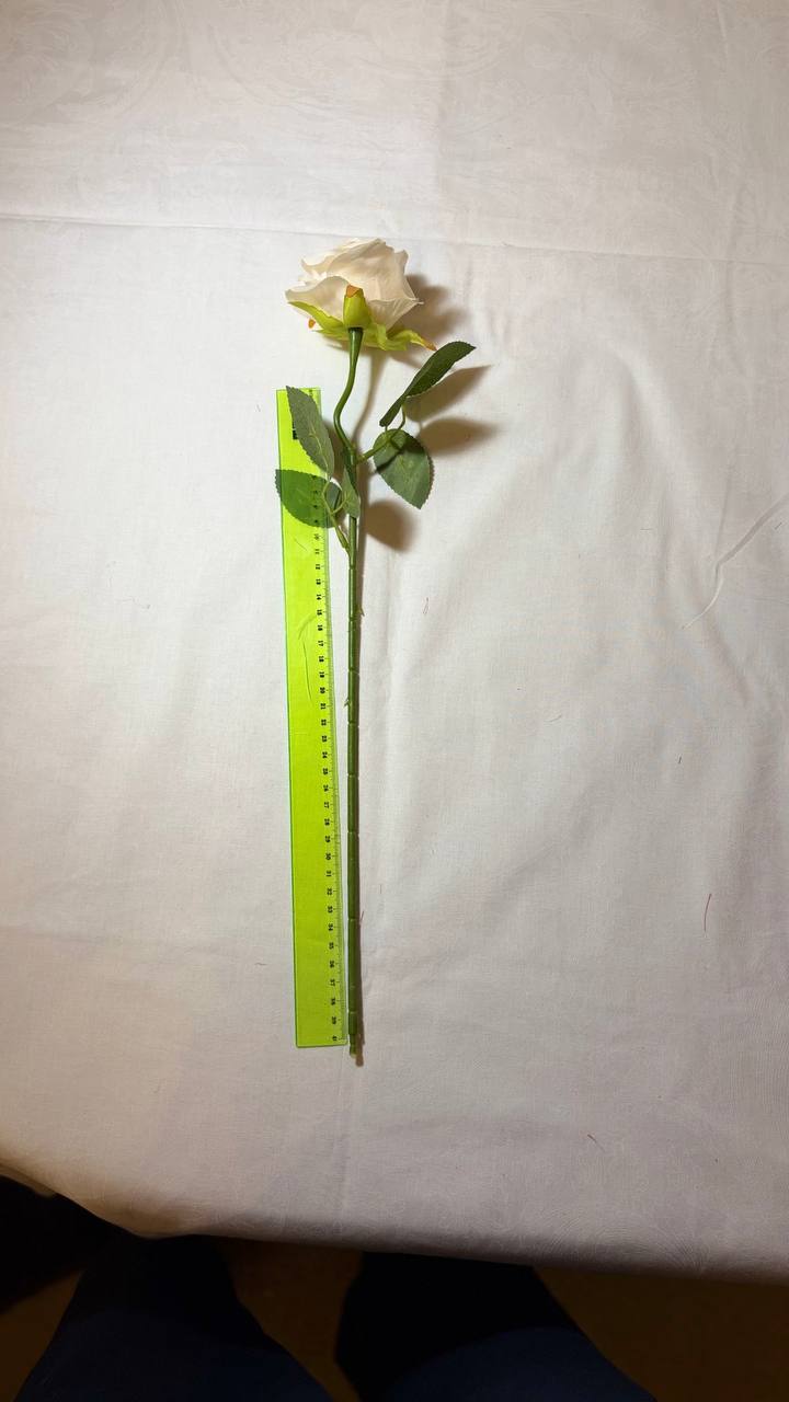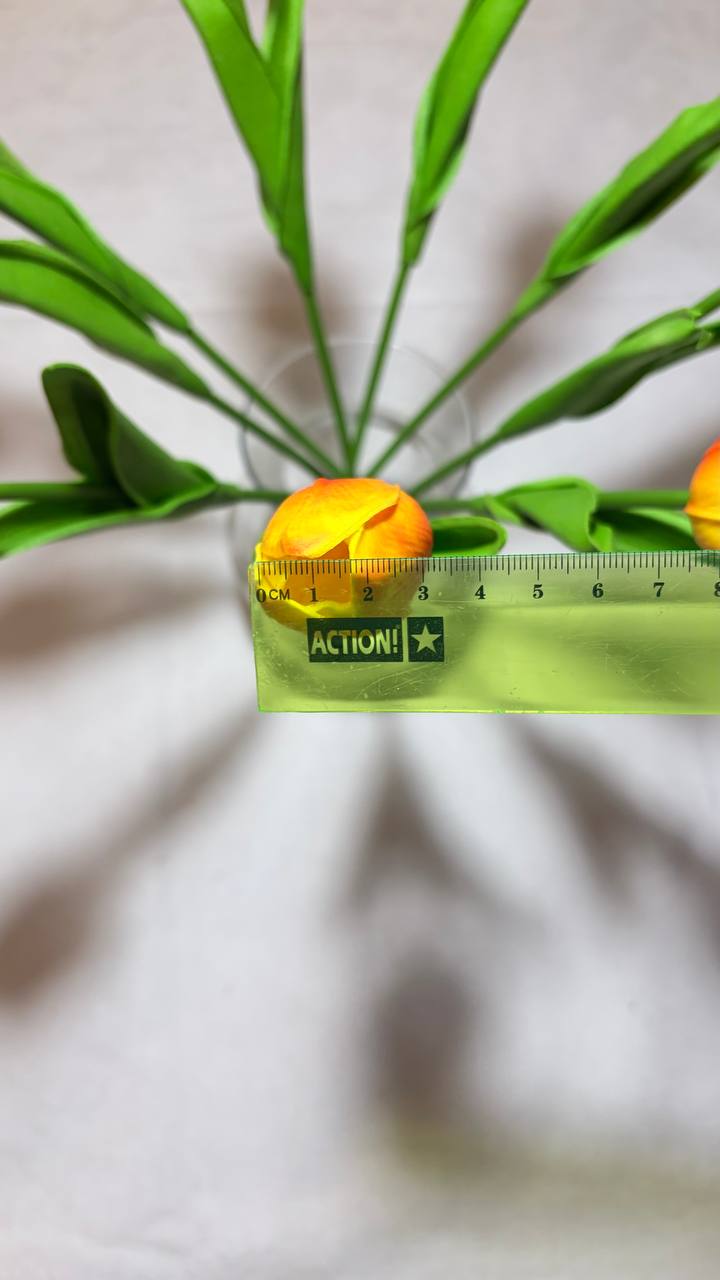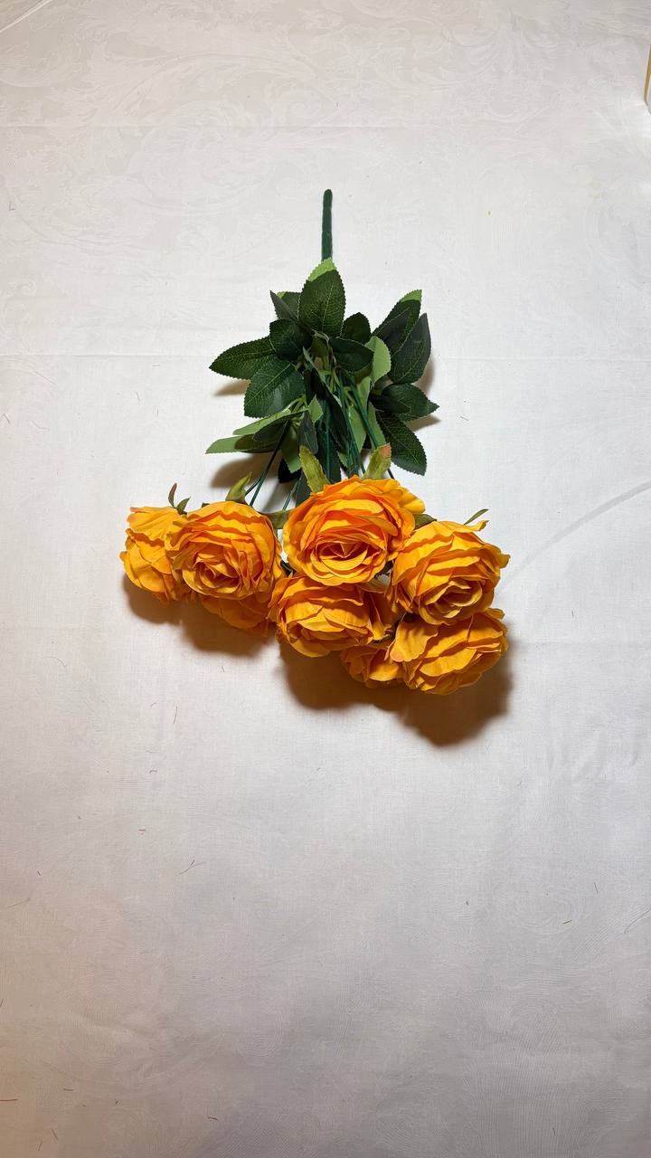 Букет состоит из 9 веточек. Цветы искусственные выполнены из прочного экопластика, а лепестки и листья — из плотной водоотталкивающей ткани. Высота букета — 44 см.