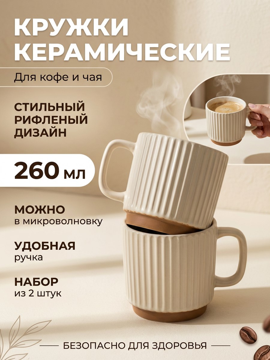 🤍 Набор керамических кружек 2 шт, 260 мл — практичное и стильное решение для ежедневного чаепития и кофе-пауз.
