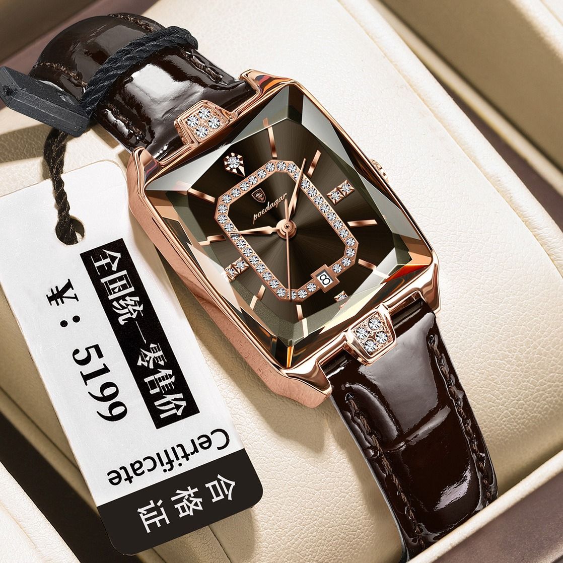 Женские наручные кварцевые часы — стильный и практичный аксессуар для повседневного ношения и особых случаев. Прямоугольная форма корпуса и аналоговый циферблат с аккуратными отметками придают модели современный и элегантный внешний вид.