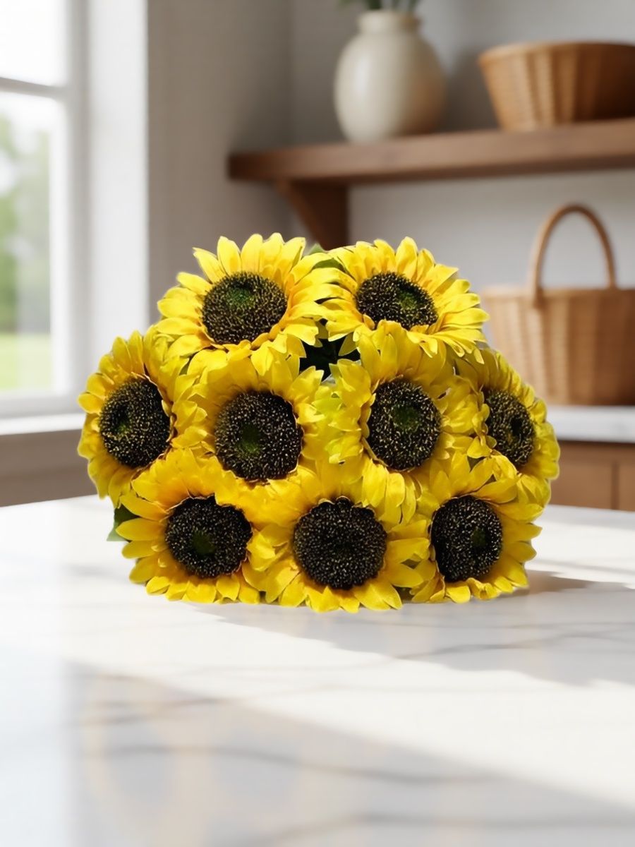 Искусственные цветы подсолнухи — практичное и эстетичное решение для декора и оформления памятных мест. Цветы искусственные для декора изготовлены из качественных и долговечных материалов, благодаря чему сохраняют яркий цвет и аккуратный внешний вид на протяжении длительного времени и не требуют ухода.