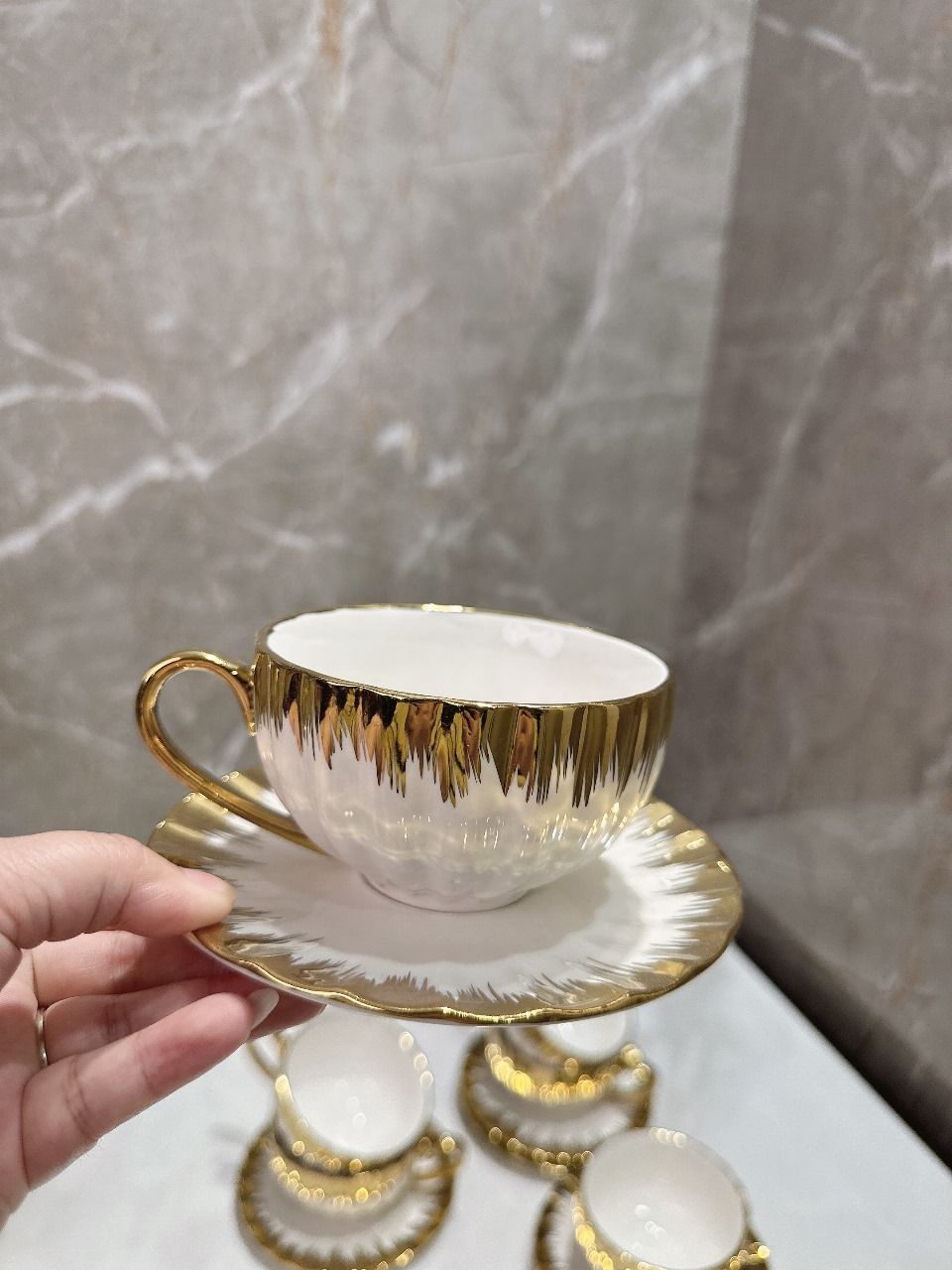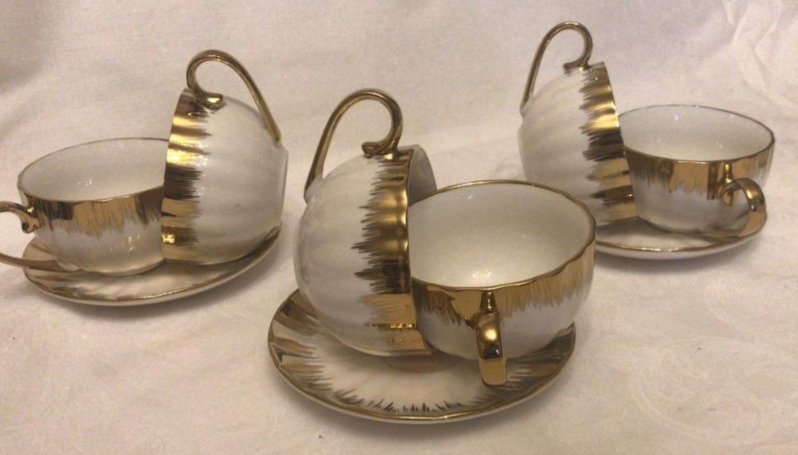 Набор кофейный 90 мл на 6 персон бело-золотой