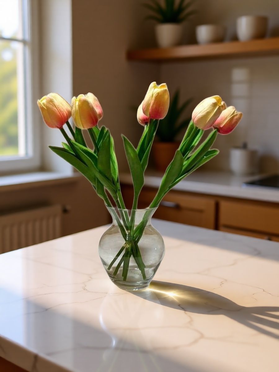 Декоративные искусственные цветы легко очищаются от пыли и сохраняют аккуратный внешний вид без полива и особых условий хранения.