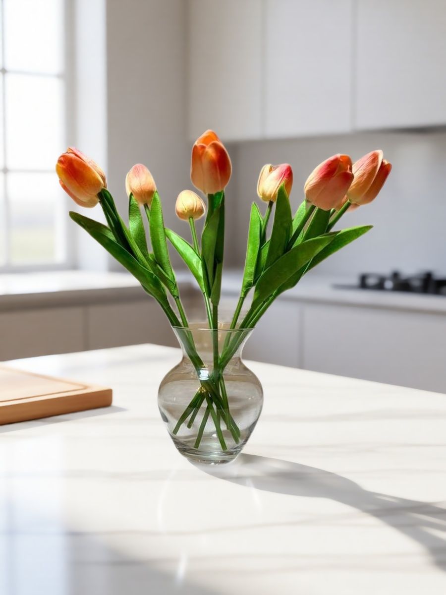 Декоративные искусственные цветы легко очищаются от пыли и сохраняют аккуратный внешний вид без полива и особых условий хранения.